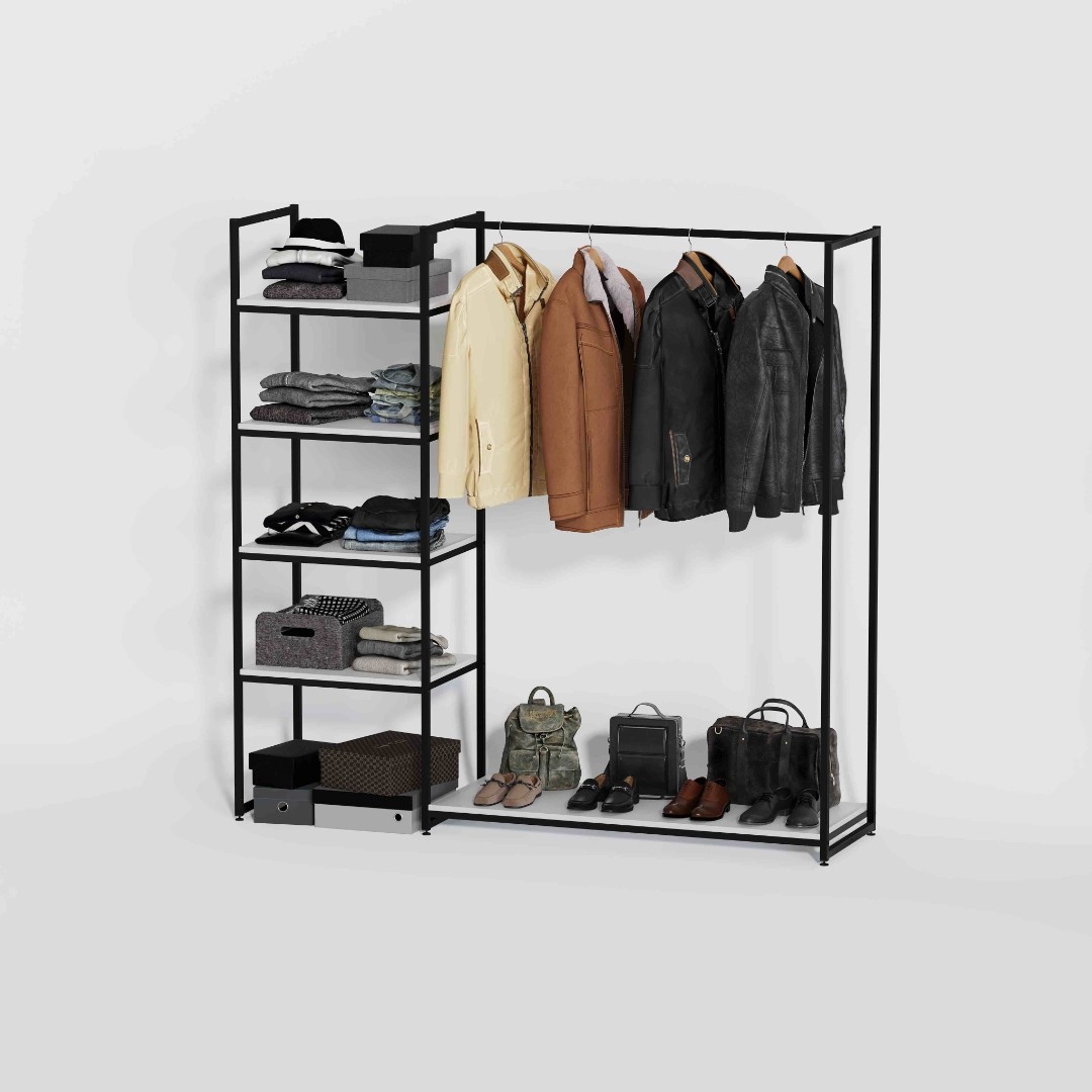 Стеллаж не просто место для хранения одежды, это стильное и функциональное решение для вашего дома или коммерческого пространства. С его помощью вы сможете эффективно использовать пространство и организовать хранение одежды и аксессуаров.