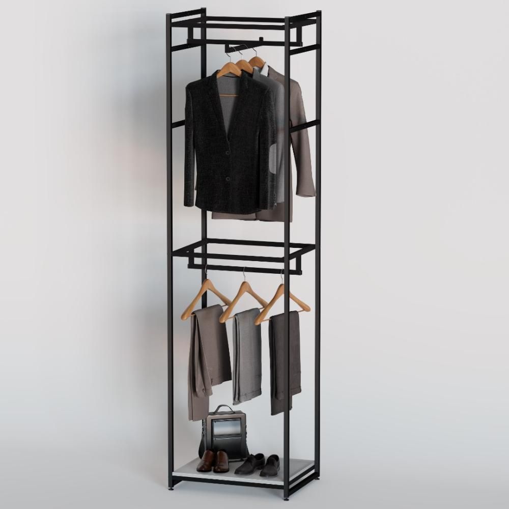 Вместительность, мобильность и способность выдерживать большие нагрузки, стеллажи могут решить широкий спектр задач в любом проекте. Располагать эту модель можно как в центре комнаты, так и у стены. Отлично подходит для джинс, брюк, курток и иных длинных вещей.