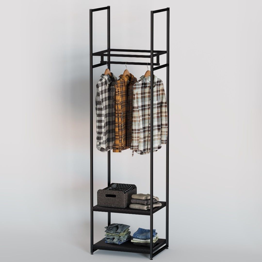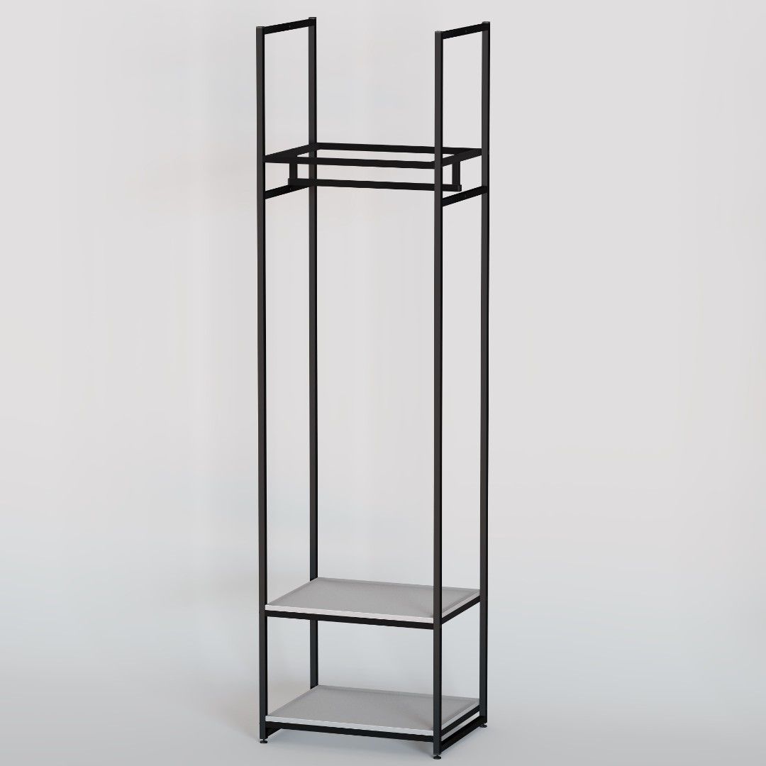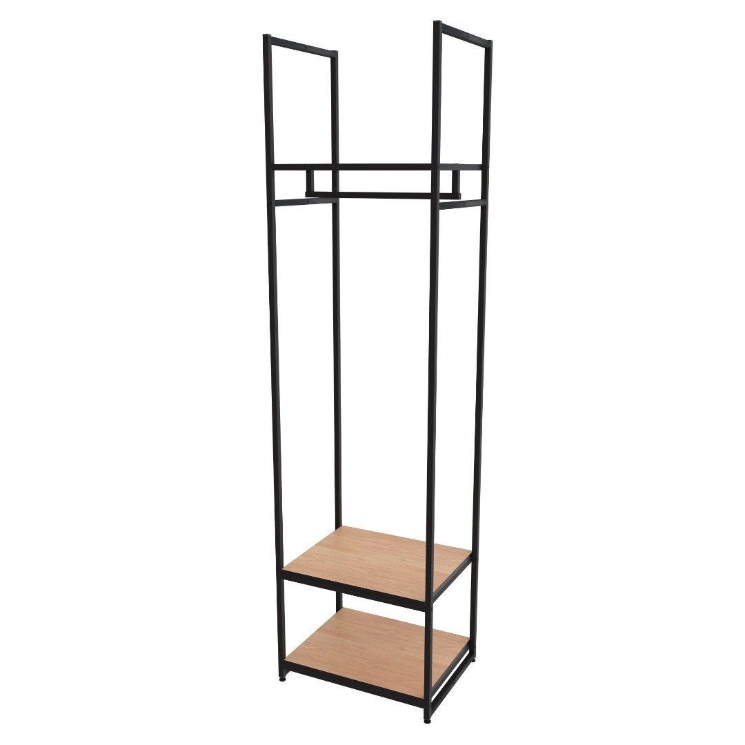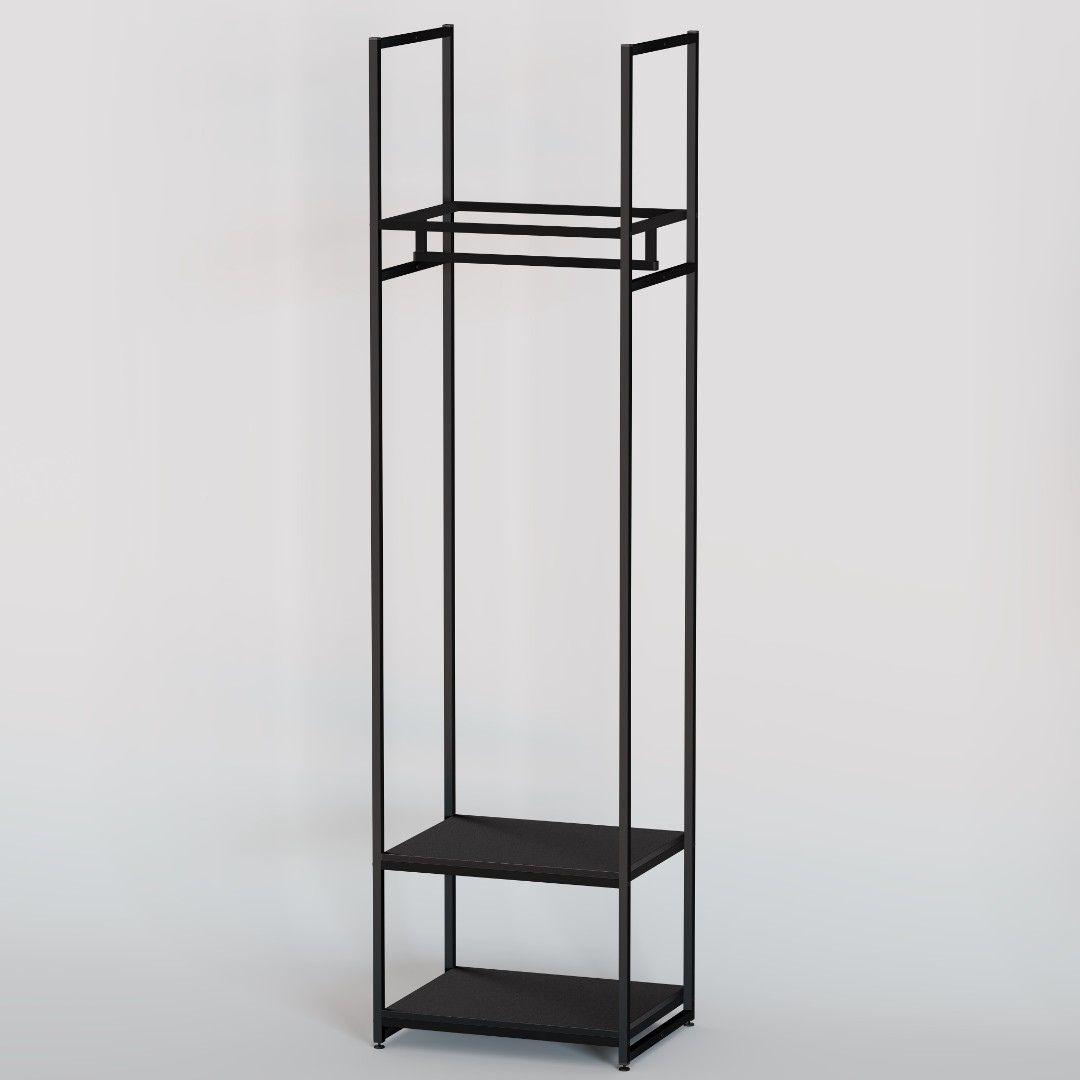 Стеллаж в стиле LOFT для одежды с двумя нижними полками и штангой для вывешивания одежды.