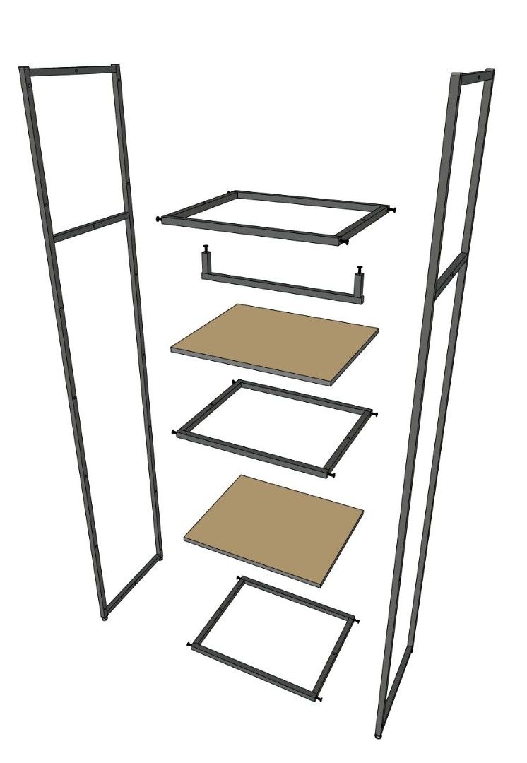 Вместительность, мобильность и способность выдерживать большие нагрузки, стеллажи могут решить широкий спектр задач в любом проекте. Располагать эту модель можно как в центре комнаты, так и у стены. Отлично подходит для джинс, брюк, курток и иных длинных вещей.