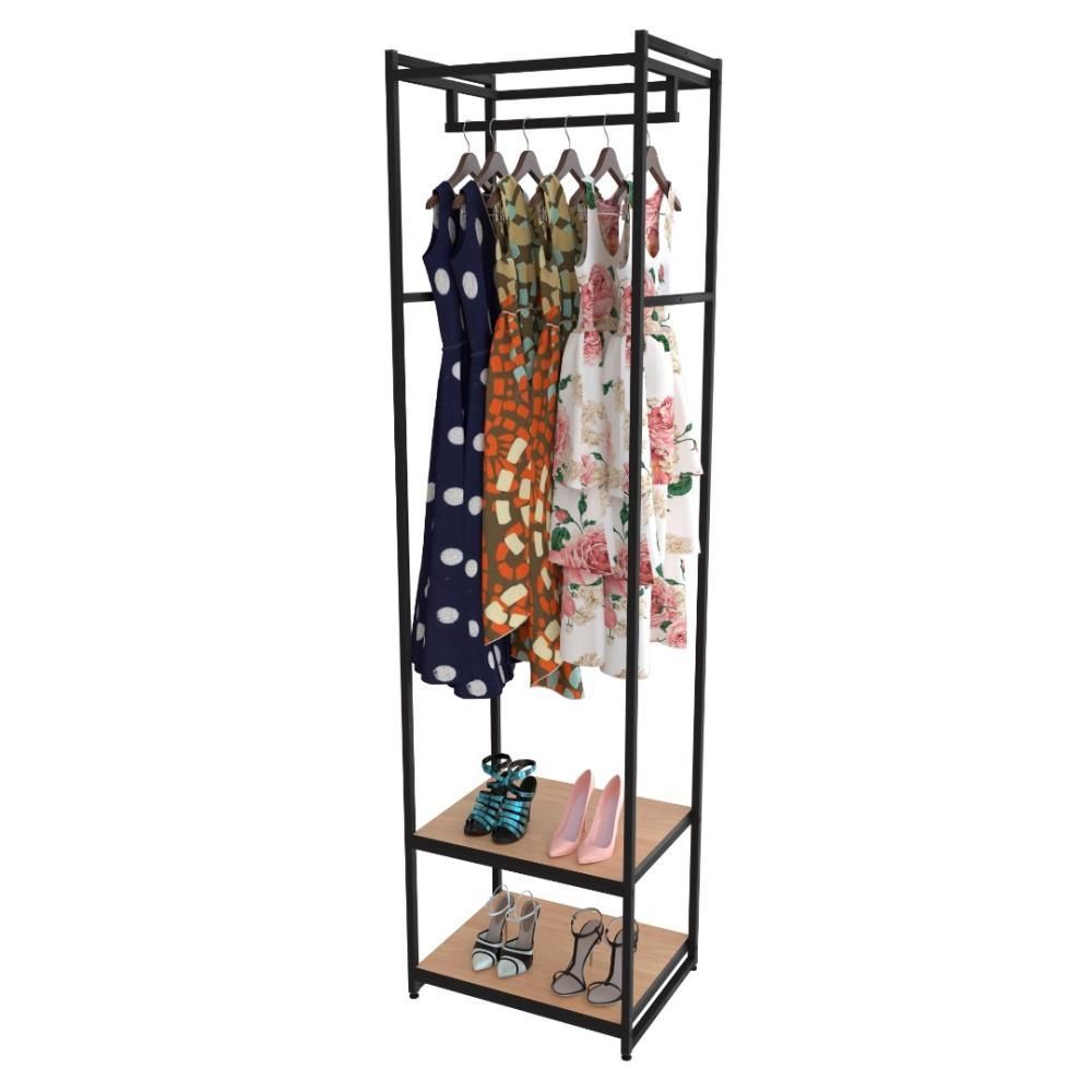 Стеллаж в стиле LOFT для одежды с двумя нижними полками и штангой для вывешивания одежды.