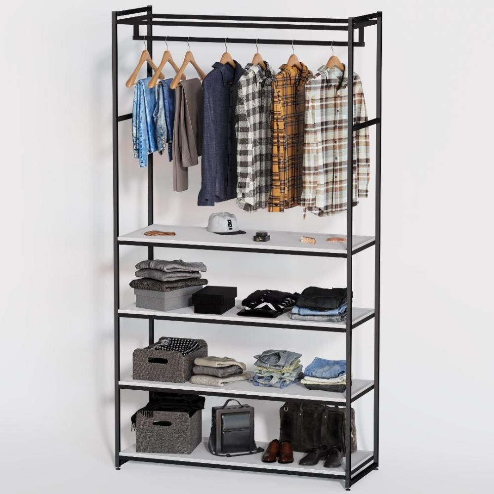 Вместительность, мобильность и способность выдерживать большие нагрузки, стеллажи могут решить широкий спектр задач в любом проекте. Располагать эту модель можно как в центре комнаты, так и у стены. Отлично подходит для джинс, брюк, курток и иных длинных вещей.