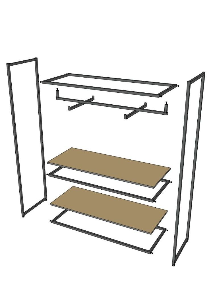 Вместительность, мобильность и способность выдерживать большие нагрузки, стеллажи могут решить широкий спектр задач в любом проекте. Располагать эту модель можно как в центре комнаты, так и у стены. Отлично подходит для джинс, брюк, курток и иных длинных вещей.