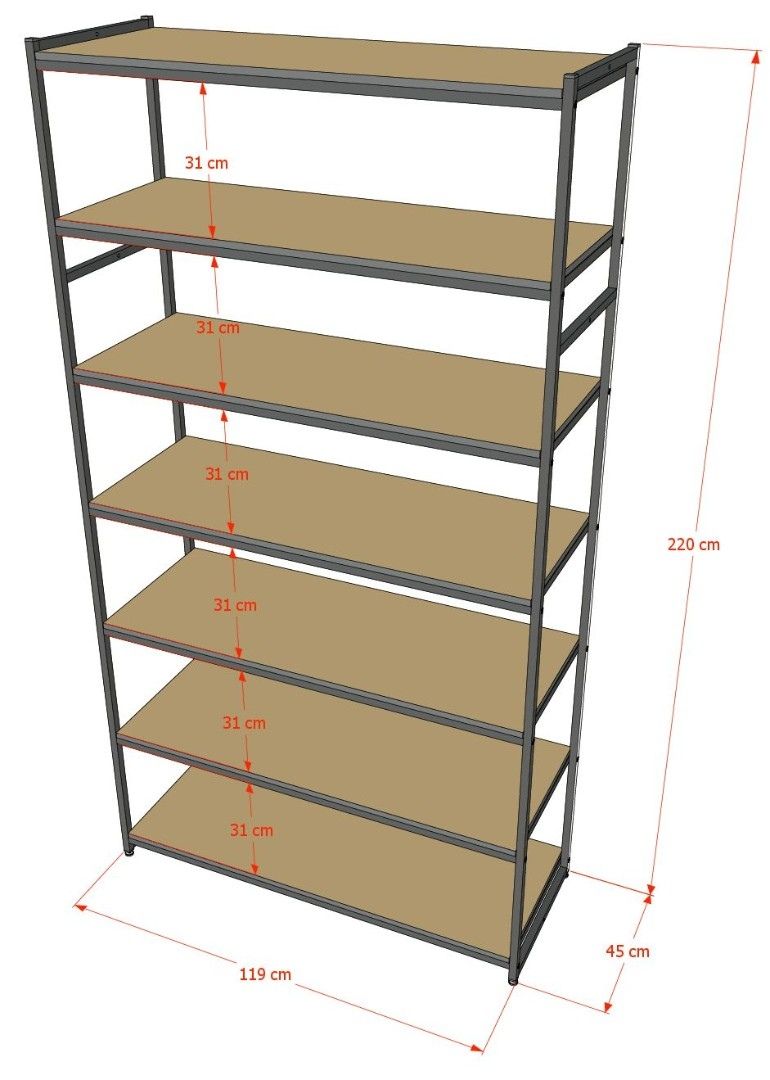 Конструкция разборная на надежных винтовых соединениях. Вся фурнитура для установки полок и ключ для сборки в комплекте.