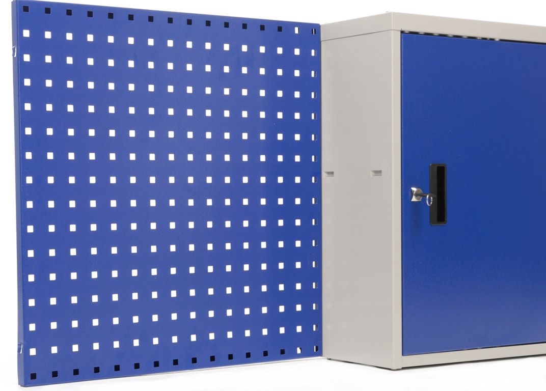 - Перфорированный экран имеет квадратную перфорацию 10*10мм с шагом 38мм для крепления верстачных аксессуаров, имеет несколько вариантов крепления к стене
