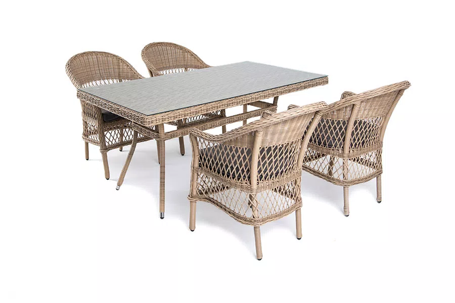 "Амароне" обеденная группа из искусственного ротанга на 4 персоны, цвет соломенныйцвет соломенный