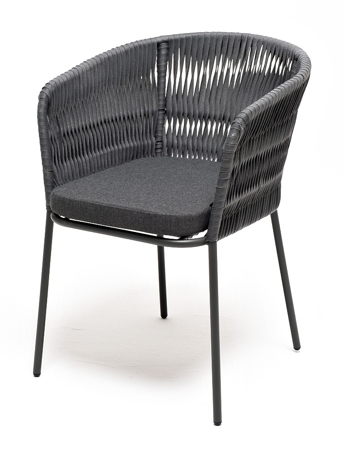 "Бордо" стул плетеный из роупа (колос), каркас алюминий темно-серый (RAL7024) шагрень, роуп серый 15мм, ткань темно-серая 019цвет Серый