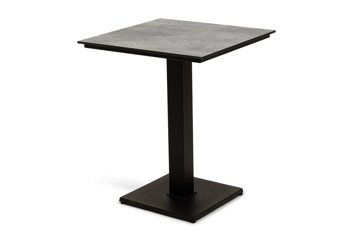 Квадратный интерьерный стол «Каффе» для двоих персон. Столешница выполнена из современного полимерного компакт-пластиком HPL, толщиной 12 мм. Этот материал устойчив к высоким температурам (можно ставить горячую посуду), пролитой жидкости, не требует специального ухода. Подстолье изготовлено из чугуна, благодаря чему столик очень устойчив на любых поверхностях.
