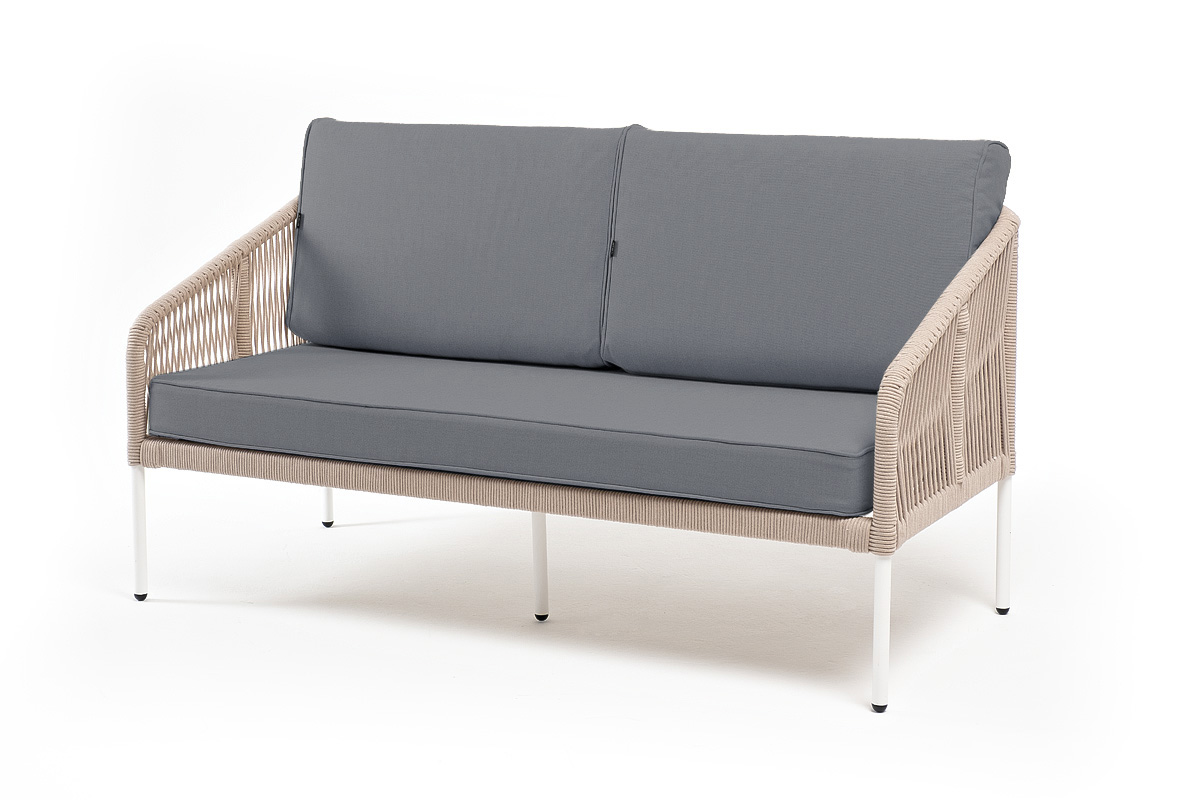 "Канны" диван 2-местный плетеный из роупа, каркас алюминий светло-серый (RAL7035) шагрень, роуп бежевый круглый, ткань серая 017, пос.H45цвет Бежевый