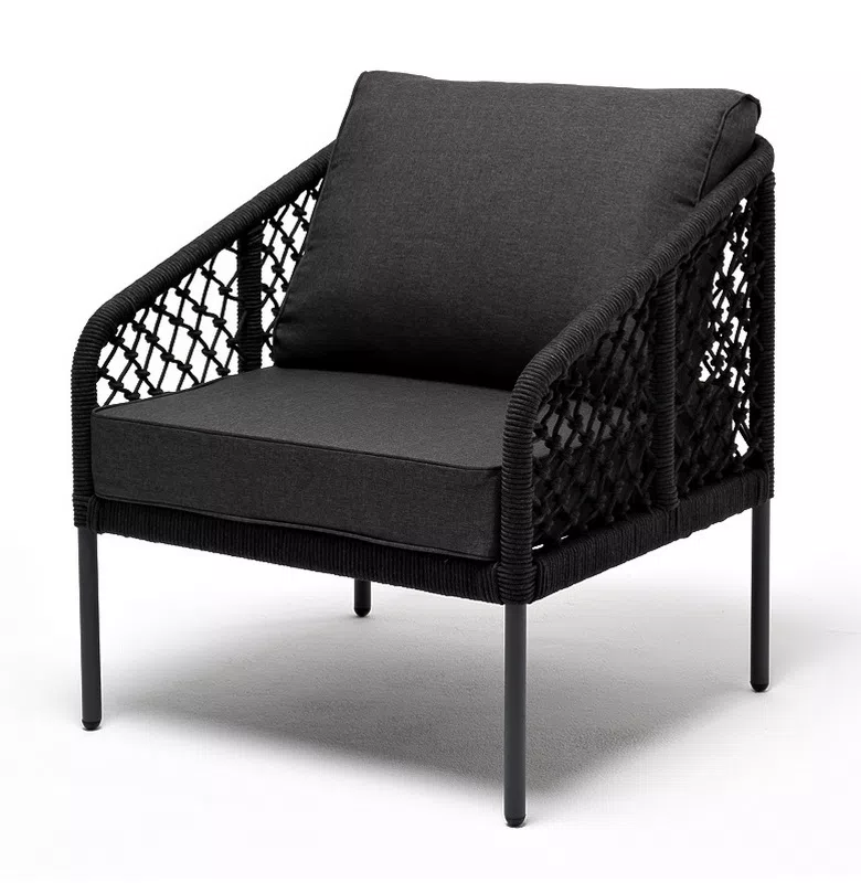 Кресло «Канны» с узловым плетением из роупа идеально подходит для комфортного отдыха в саду или на веранде.
