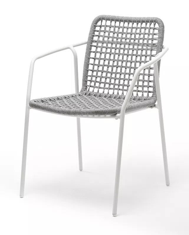 «Тунис» стул плетеный из роупа, полиэфирной веревки с каркасом из алюминия белого цвета.