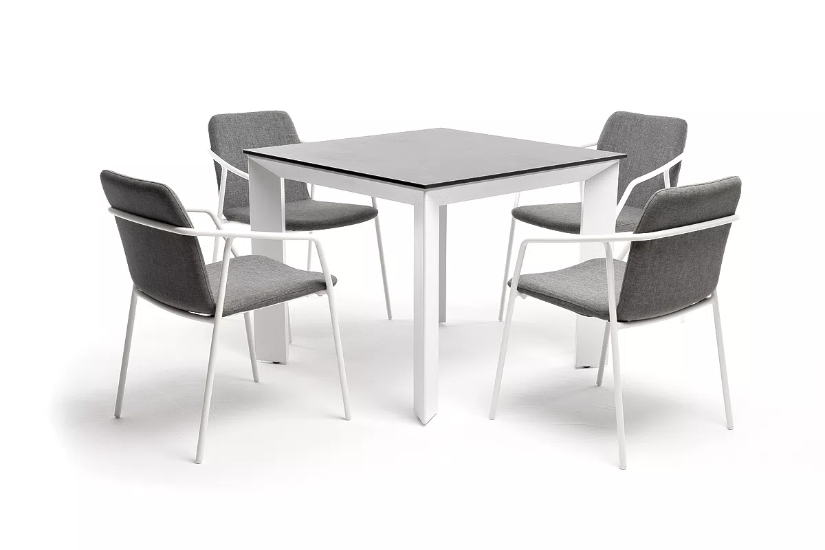 "Венето" обеденная группа на 4 персоны со стульями "Марокко", каркас белый, роуп серыйцвет Серый