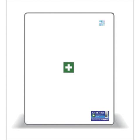 Аптечка первой помощи работникам в пластиковом шкафу рассчитана на оказание помощи ориентировочно 10 пострадавшим.Соответствует приказу от 15 декабря 2020 г. №1331н "ОБ УТВЕРЖДЕНИИ ТРЕБОВАНИЙ К КОМПЛЕКТАЦИИ МЕДИЦИНСКИМИ ИЗДЕЛИЯМИ АПТЕЧКИ ДЛЯ ОКАЗАНИЯ ПЕРВОЙ ПОМОЩИ РАБОТНИКАМ". Состав: 1. Маска медицинская нестерильная одноразовая, 10 шт. 2. Перчатки медицинские нестерильные, размером не менее М, 2 пары 3. Устройство для проведения искусственного дыхания «Рот-Устройство-Рот», 1 шт. 4. Жгут кровоостанавливающий для остановки артериального кровотечения, 1 шт. 5. Бинт марлевый медицинский размером не менее 5 м х 10 см, 4 шт. 6. Бинт марлевый медицинский размером не менее 7 м х 14 см, 4 шт. 7. Салфетки марлевые медицинские стерильные размером не менее 16 х 14 см № 10, 2 уп. 8. Лейкопластырь фиксирующий рулонный размером не менее 2 х 500 см, 1 шт. 9. Лейкопластырь бактерицидный размером не менее 1,9 х 7,2 см, 10 шт. 10. Лейкопластырь бактерицидный размером не менее 4 х 10 см, 2 шт. 11. Покрывало спасательное изотермическое размером не менее 160 х 210 см, 2 шт. 12. Ножницы для разрезания повязок, 1 шт.