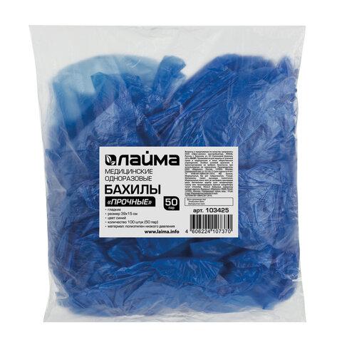 Бахилы КОМПЛЕКТ 100 штук (50 пар) в упаковке, ПРОЧНЫЕ, 40х14 см, 4 г, ПНД, LAIMA, 103425