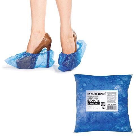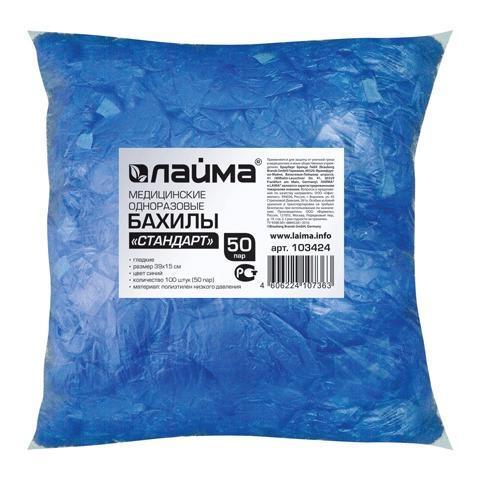 Бахилы КОМПЛЕКТ 100 штук (50 пар) в упаковке, СТАНДАРТ+, 40х14 см, 3 г, ПНД, LAIMA, 103424