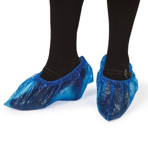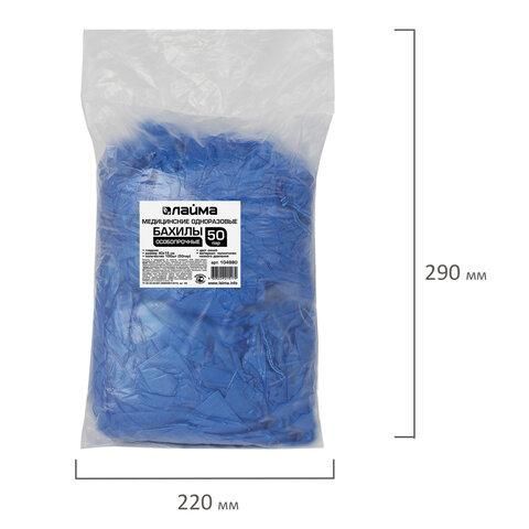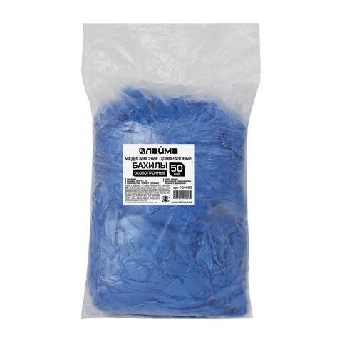 Бахилы КОМПЛЕКТ 100 штук (50 пар), ОСОБО ПРОЧНЫЕ, размер 40х15 см, 55 мкм, 6,5 г, ПНД, ЛАЙМА, 104980