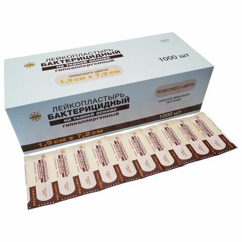 Лейкопластырь бактерицидный LEIKO комплект 1000 шт., 1,9х7,2 см, на тканевой основе, телесного цвета, 213175