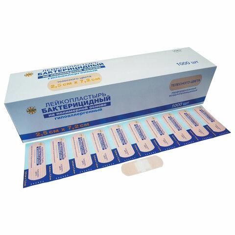 Лейкопластырь бактерицидный LEIKO комплект 1000 шт., 2,5х7,2 см, на полимерной основе, телесного цвета, 213576