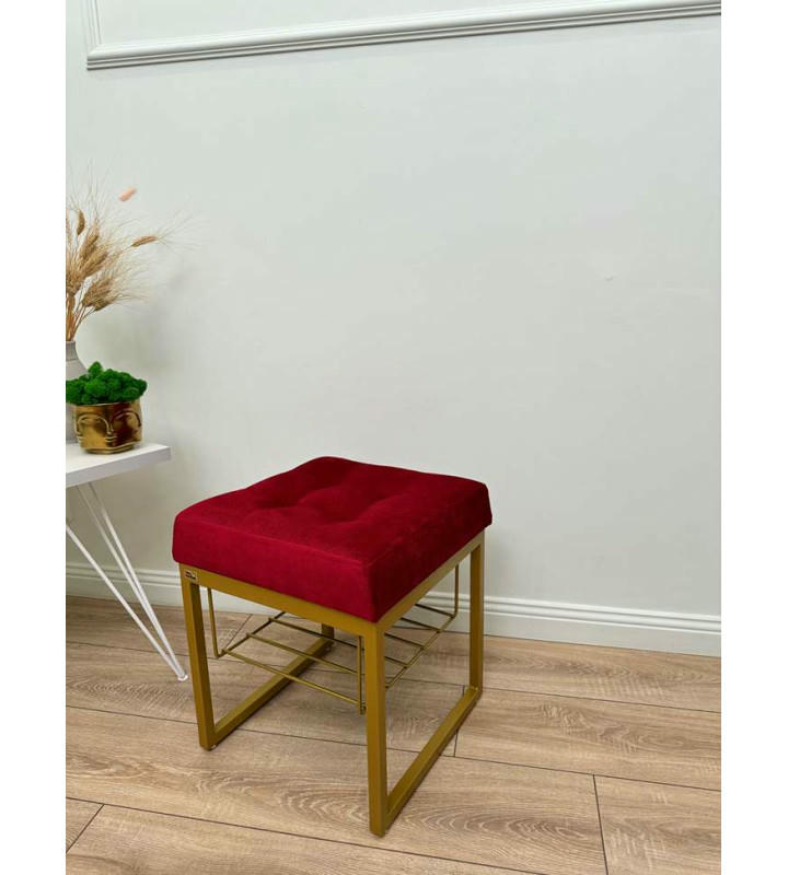 Банкетка Марсей 40-44 с полкой (красный/золото)
