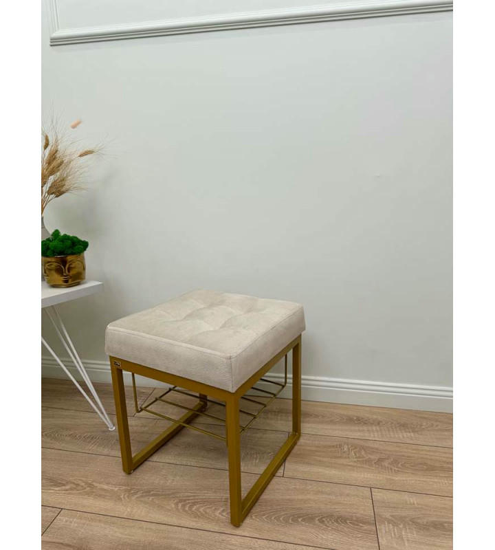 Банкетка Марсей 40-44 с полкой (светло бежевый/золото)