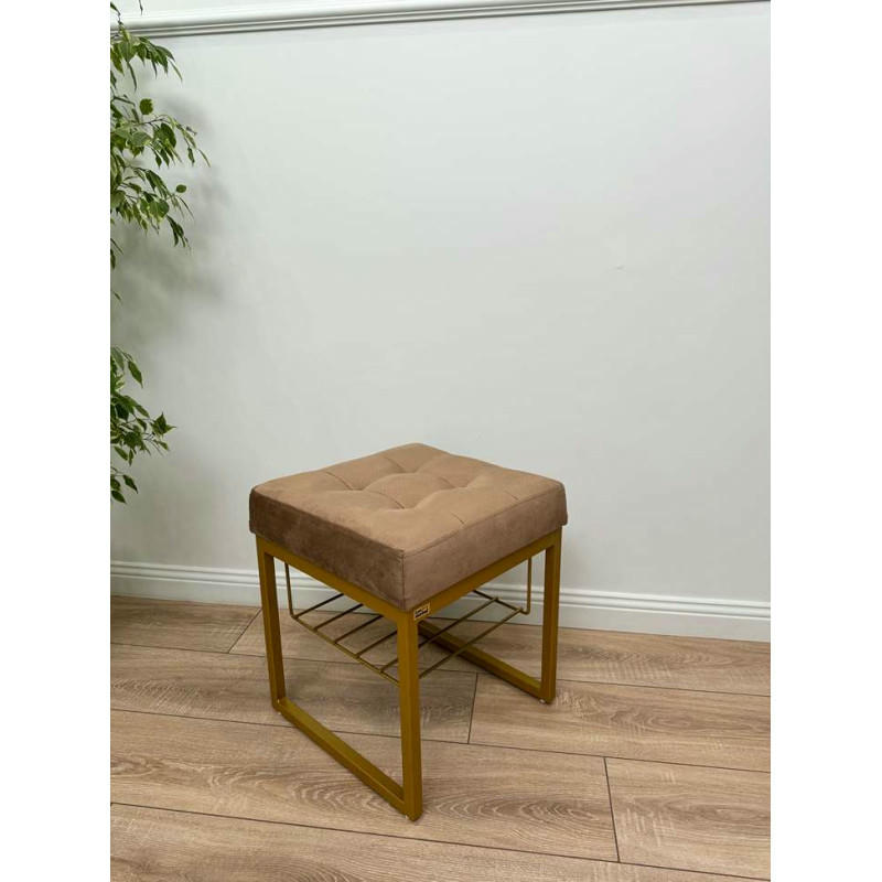 Банкетка Марсей 40-44 с полкой (светло коричневый/золото)