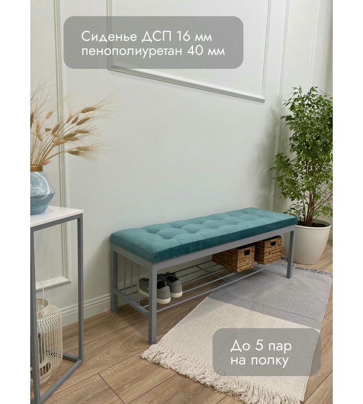 Банкетка Сканди-120-1 (бирюзовый/серый)