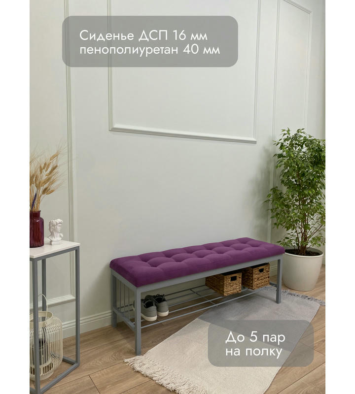Банкетка Сканди-120-1 (фиолетовый/серый)