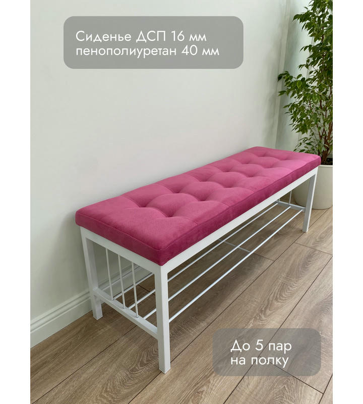 Банкетка Сканди-120-1 (розовый/белый)