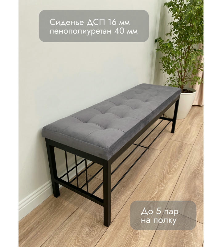 Банкетка Сканди-120-1 (серый/черный)