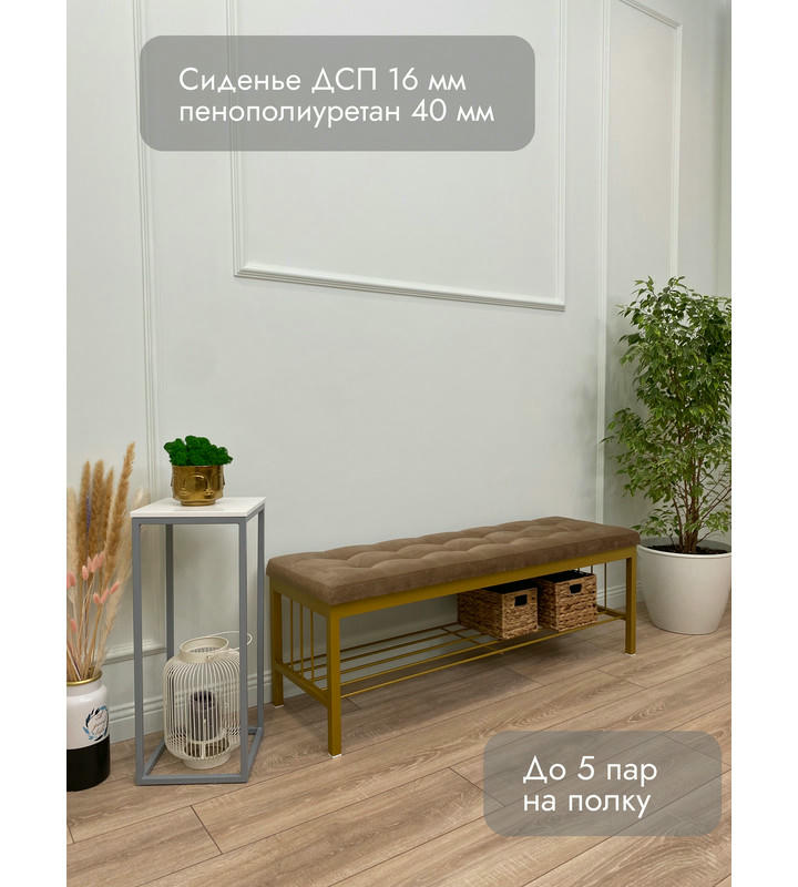 Банкетка Сканди-120-1 (светло-коричневый/золото)