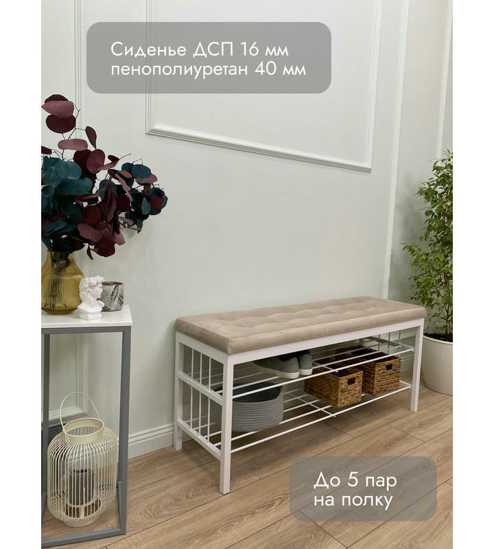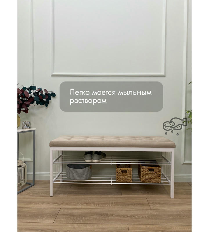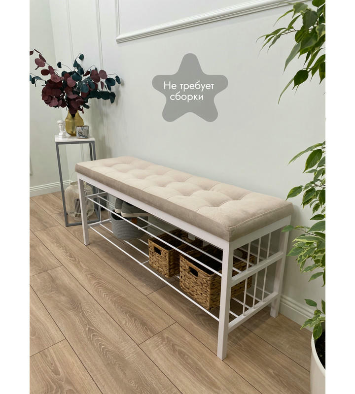 Банкетка Сканди-120-2-полочная (бежевый/белый)