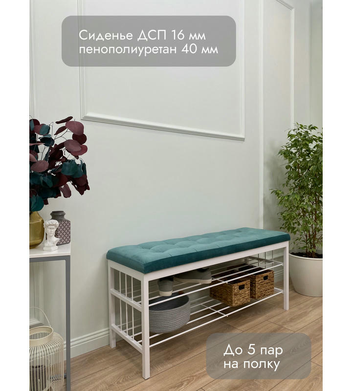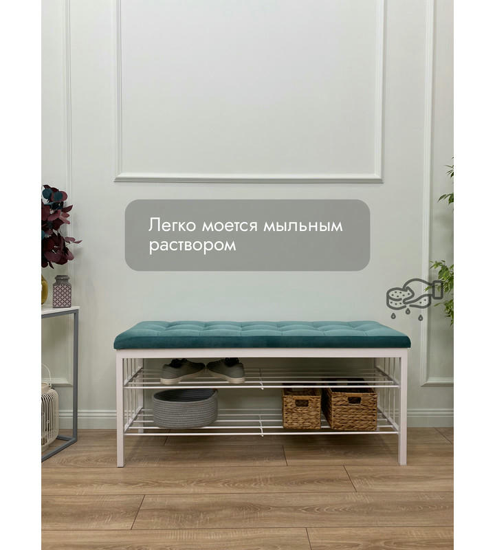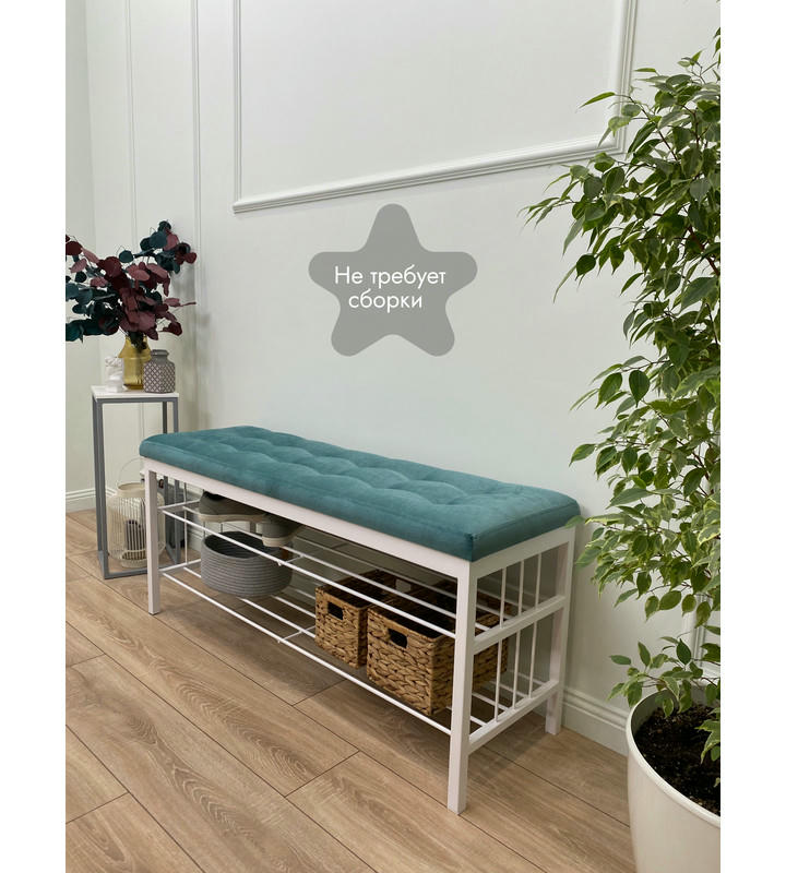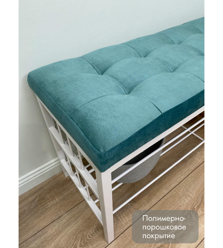 Банкетка Сканди-120-2-полочная (бирюзовый/белый)