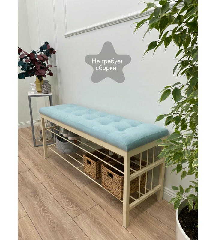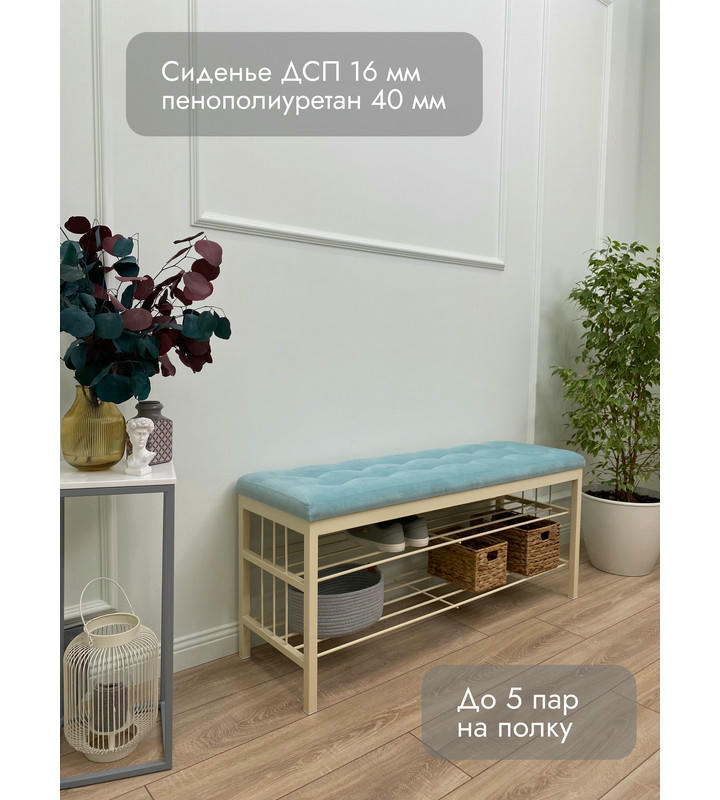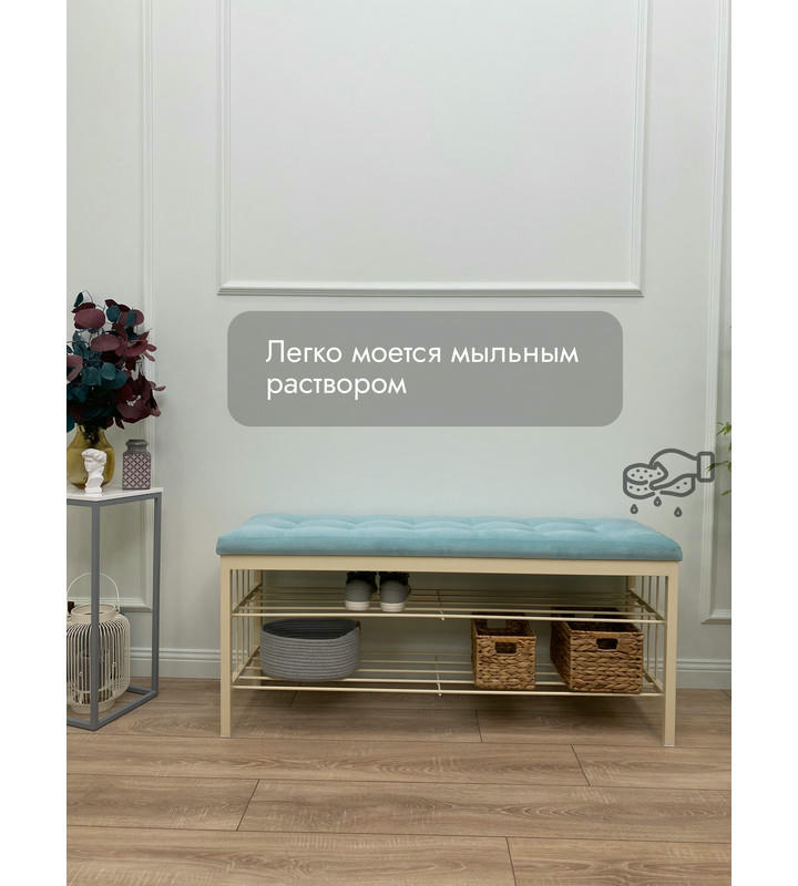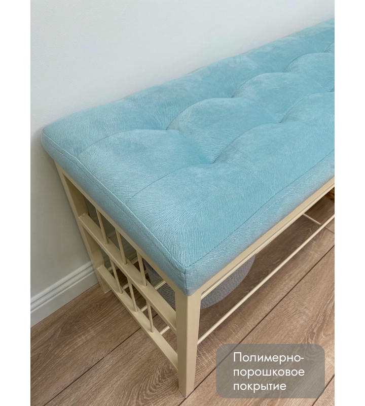 Банкетка Сканди-120-2-полочная (бирюзовый/бежевый)