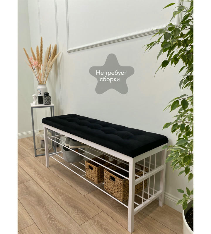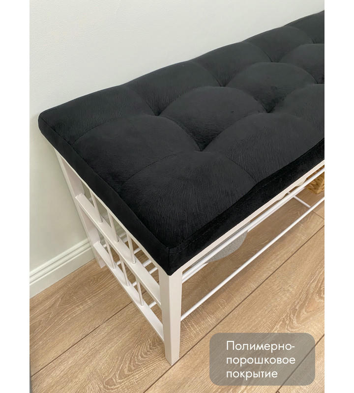 Банкетка Сканди-120-2-полочная (черный/белый)