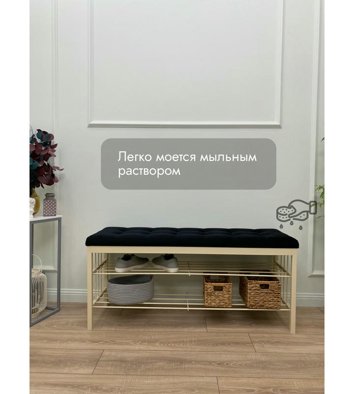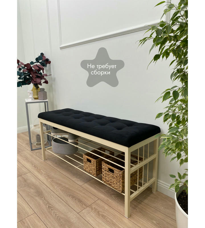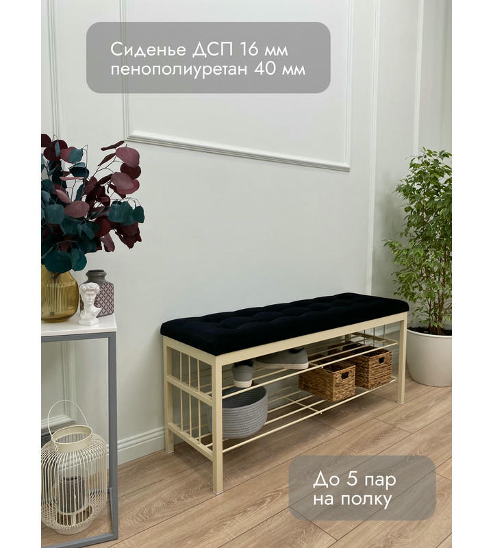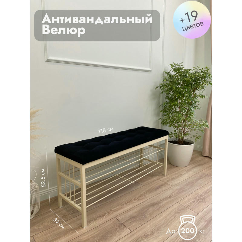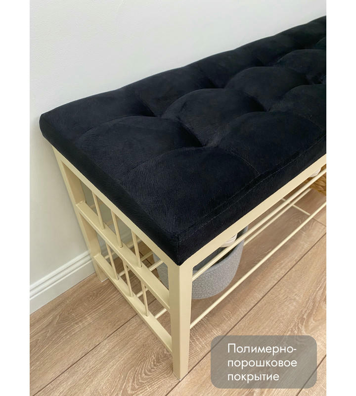 Банкетка Сканди-120-2-полочная (черный/бежевый)