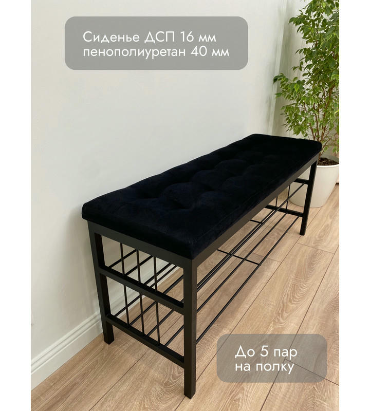 Банкетка Сканди-120-2-полочная (черный/черный)