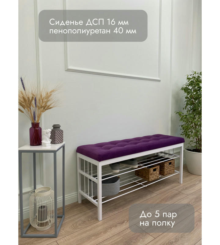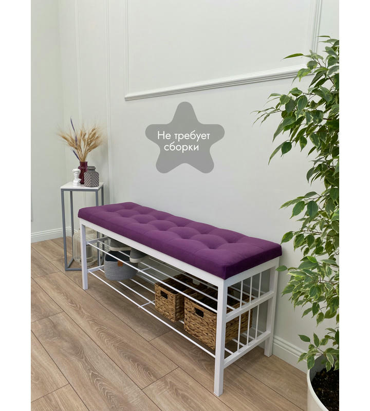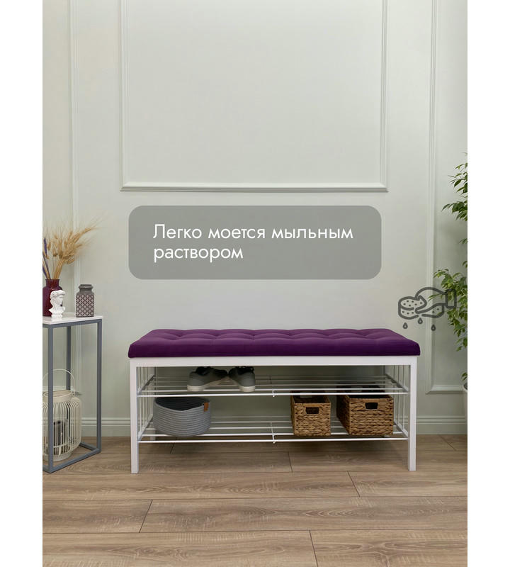 Банкетка Сканди-120-2-полочная (фиолетовый/белый)
