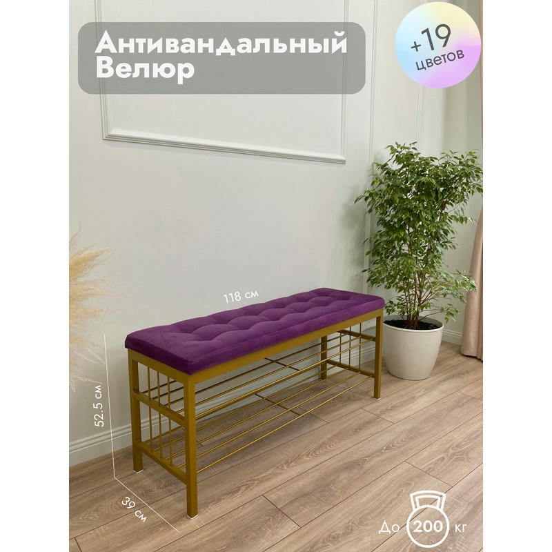 Банкетка Сканди-120-2-полочная (фиолетовый/золото)