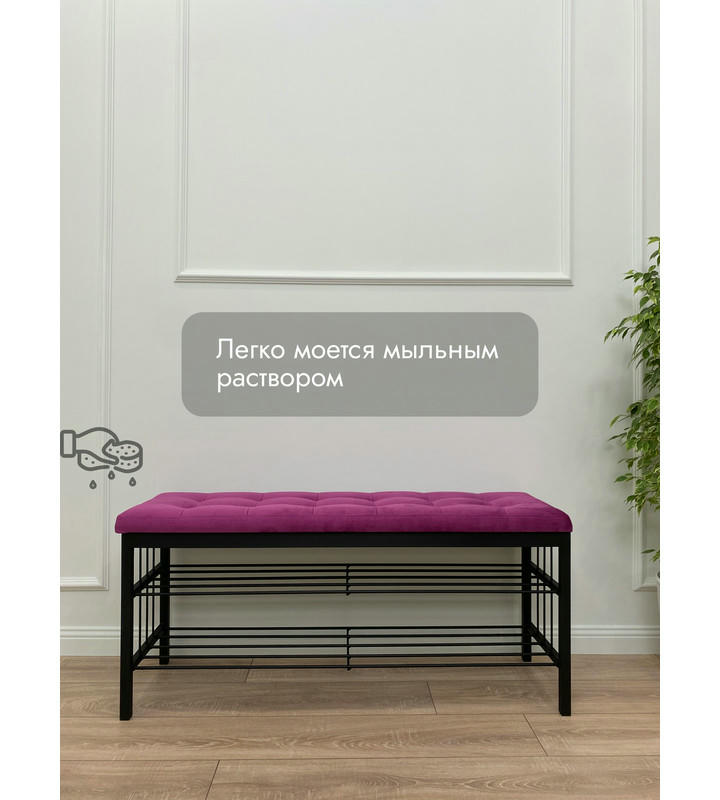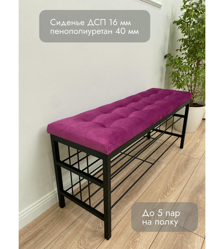 Банкетка Сканди-120-2-полочная (фуксия/черный)