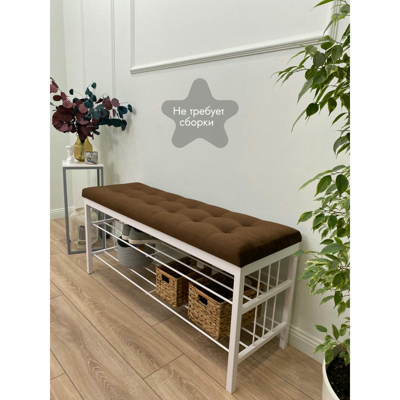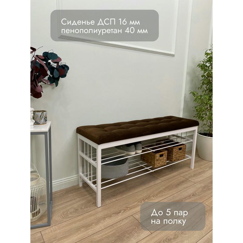 Банкетка Сканди-120-2-полочная (коричневый/белый)