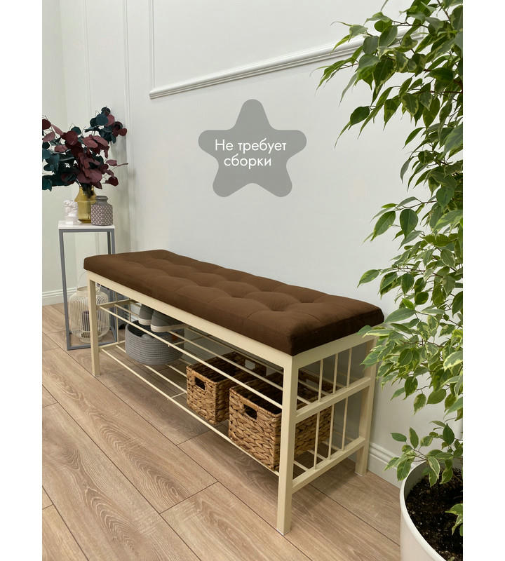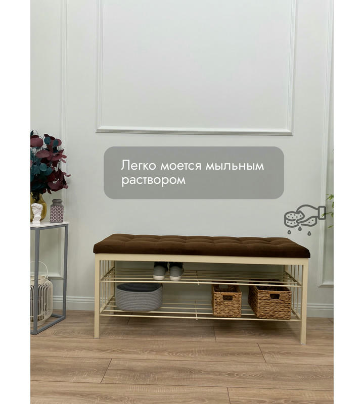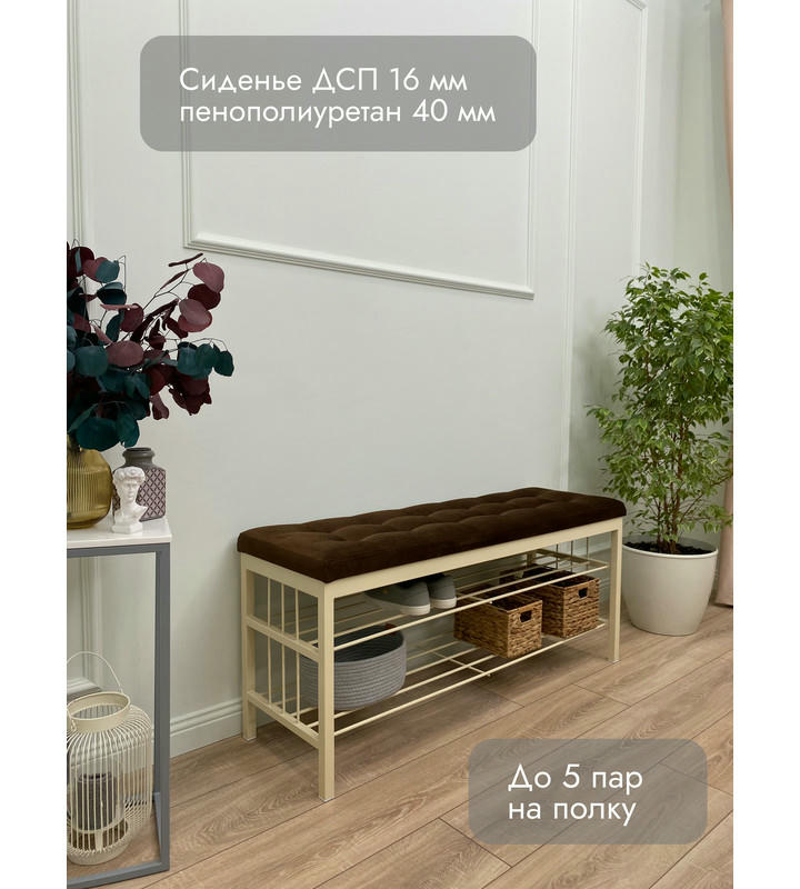 Банкетка Сканди-120-2-полочная (коричневый/бежевый)
