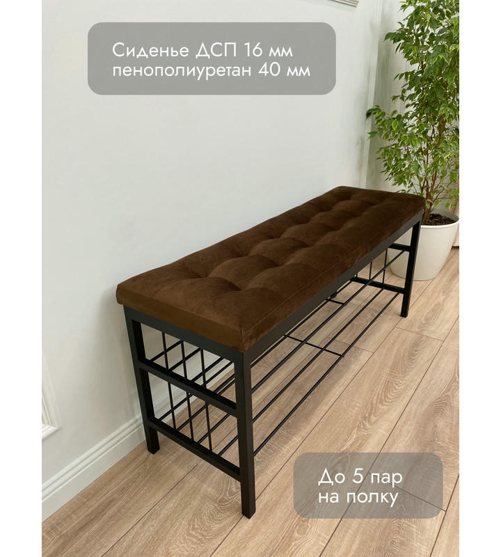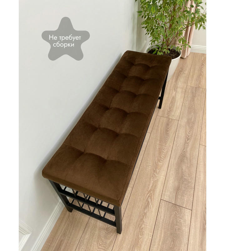 Банкетка Сканди-120-2-полочная (коричневый/черный)