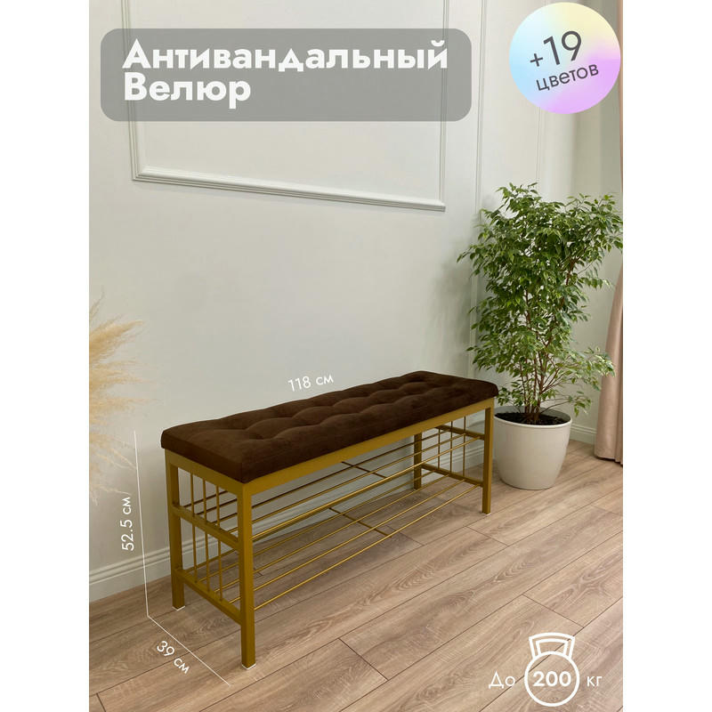 Банкетка Сканди-120-2-полочная (коричневый/золото)