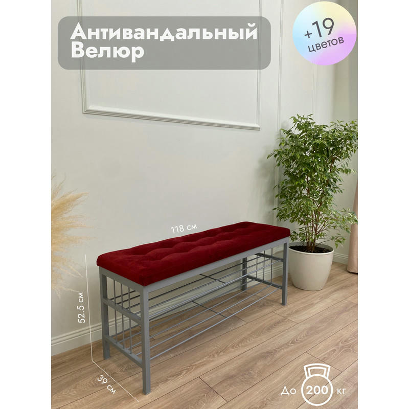 Банкетка Сканди-120-2-полочная (красный/серый)