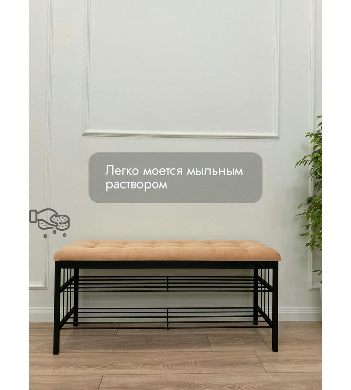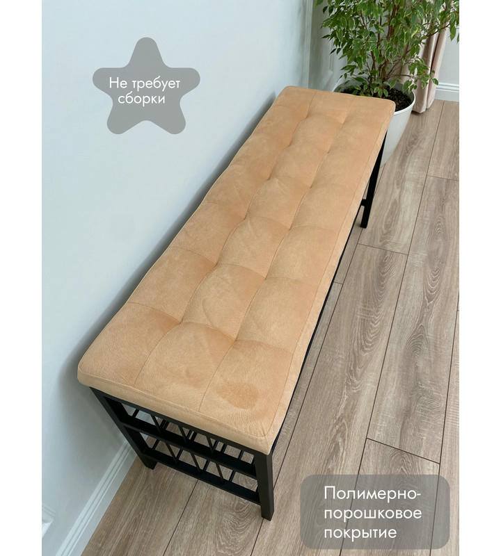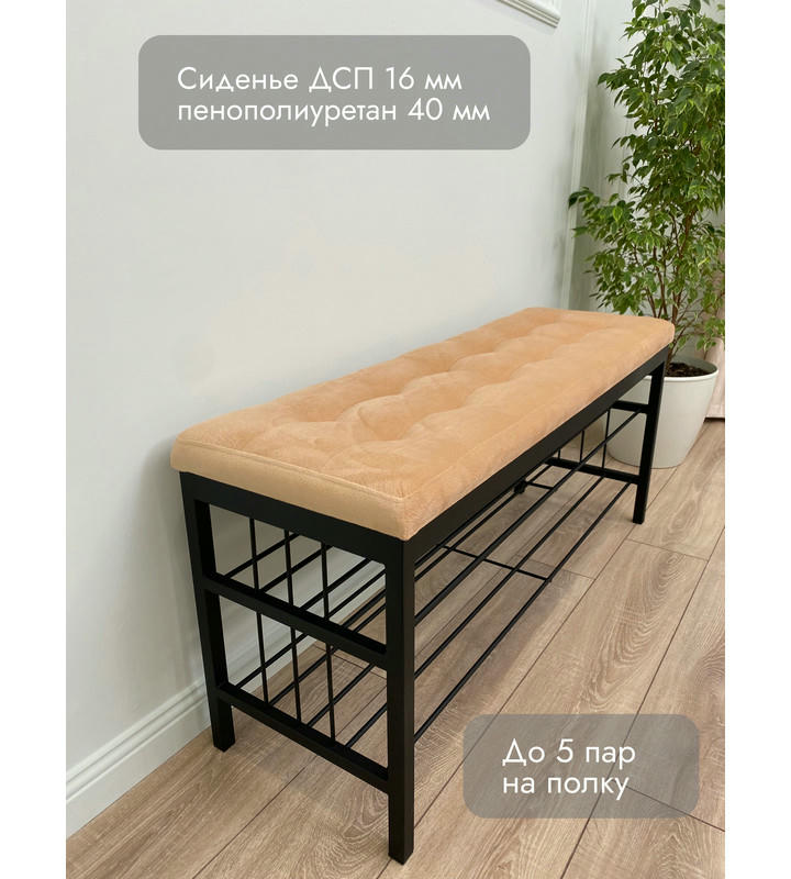 Банкетка Сканди-120-2-полочная (персиковый/черный)