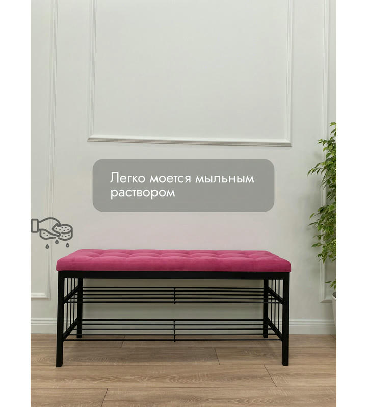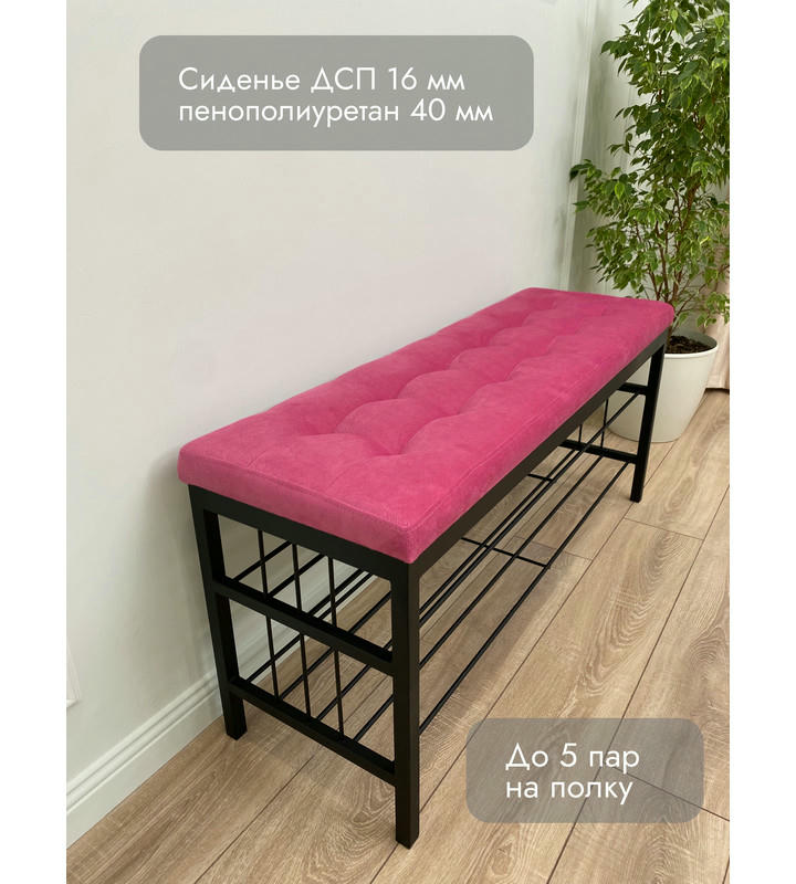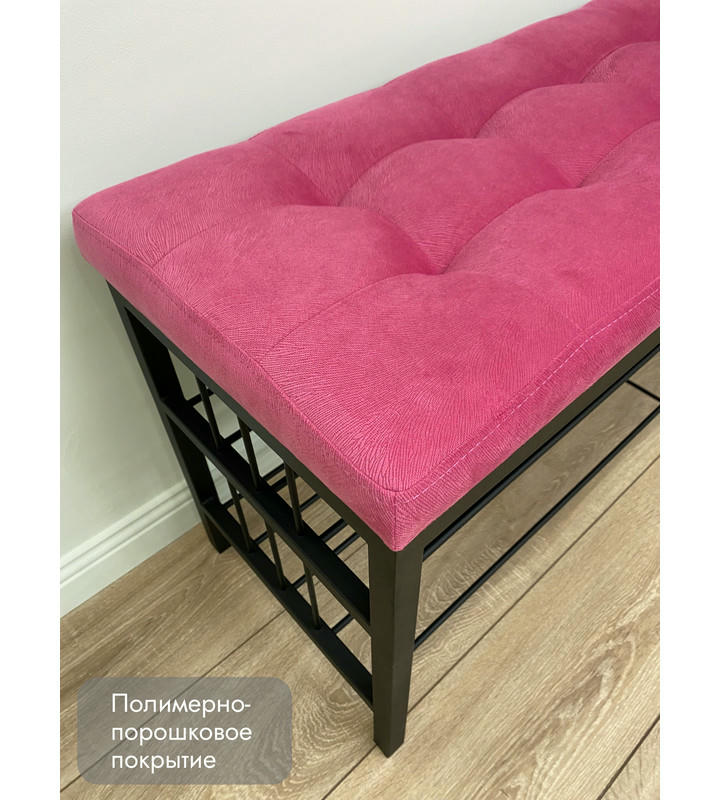 Банкетка Сканди-120-2-полочная (розовый/черный)