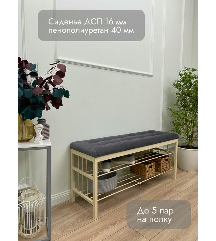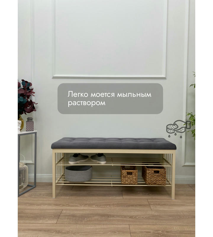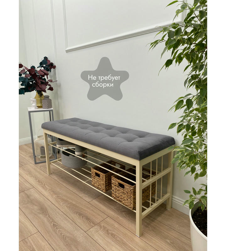 Банкетка Сканди-120-2-полочная (серый/бежевый)