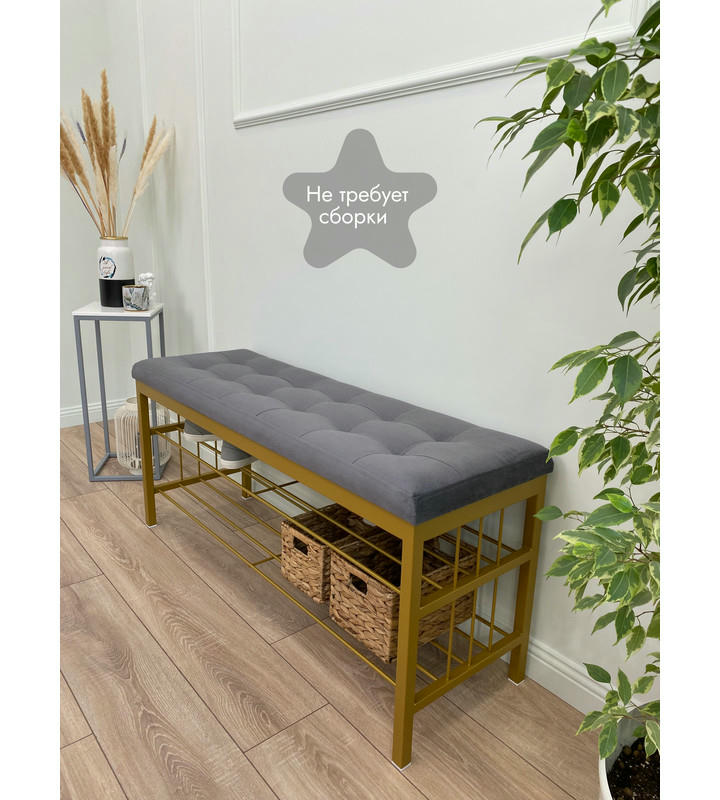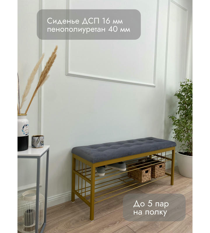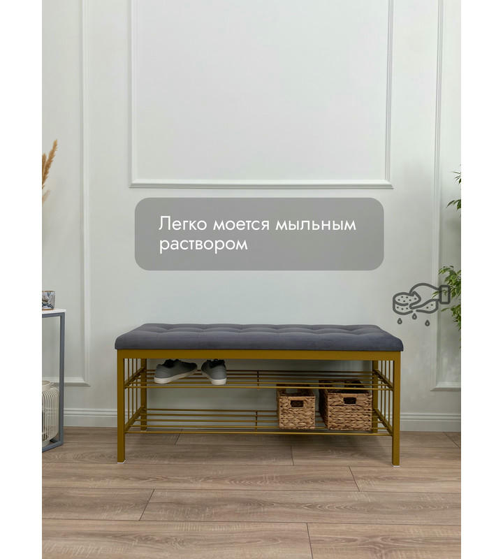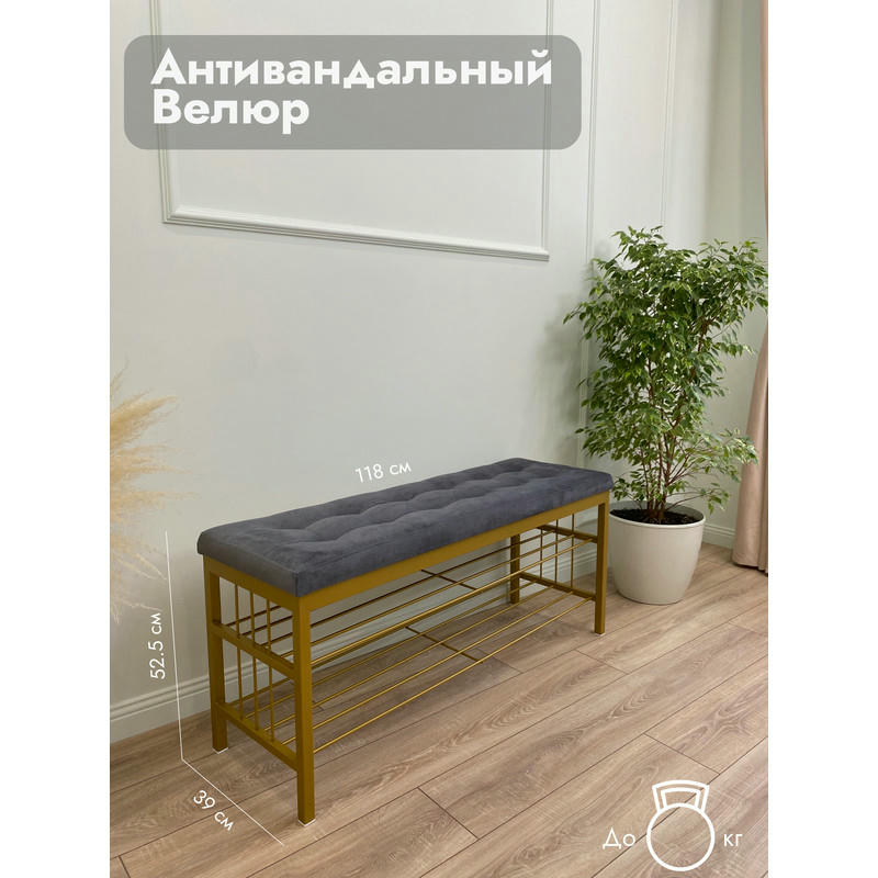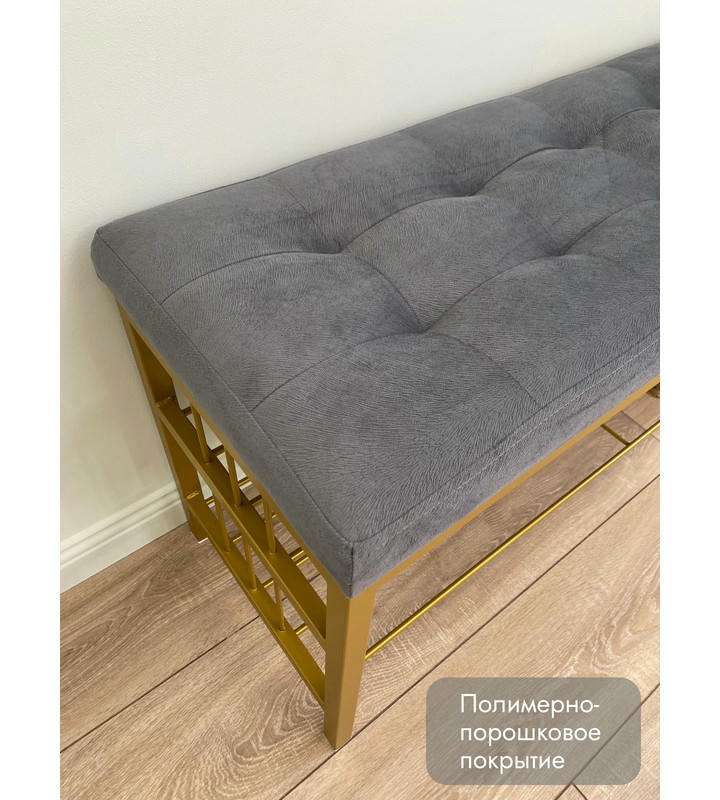 Банкетка Сканди-120-2-полочная (серый/золото)