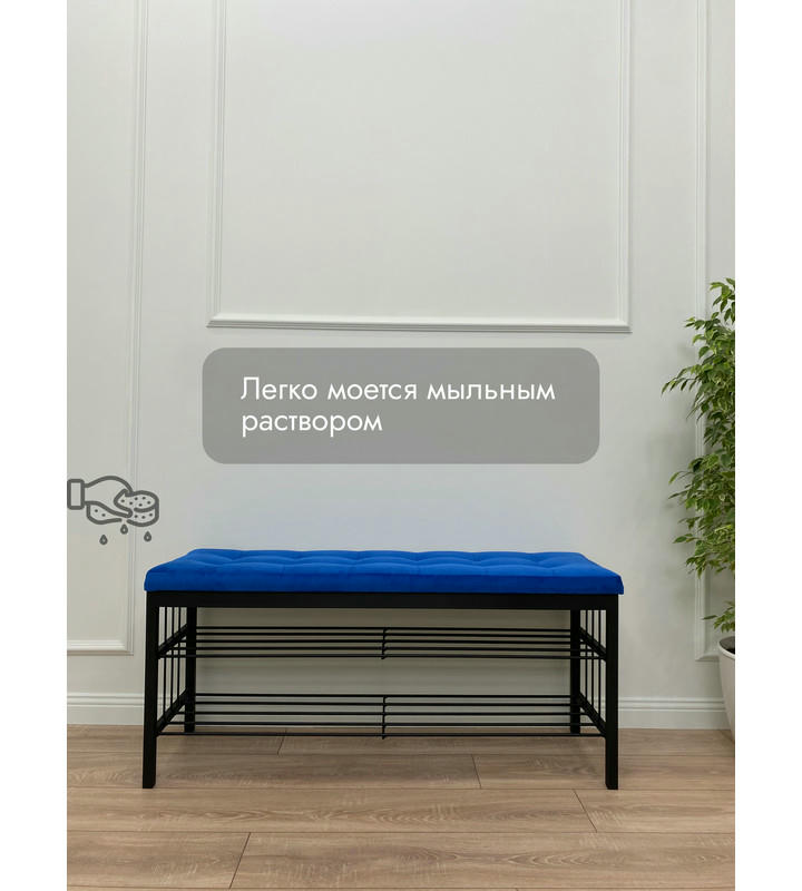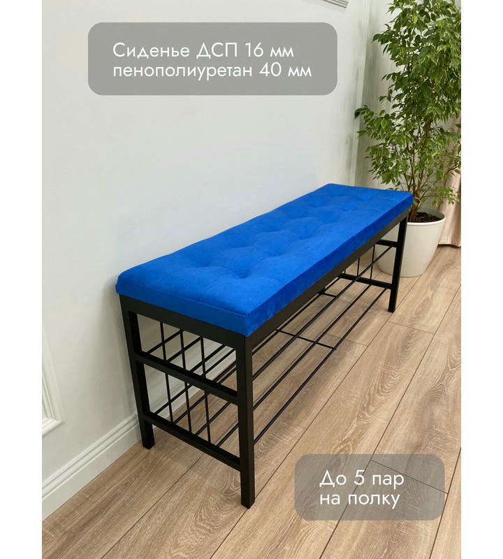 Банкетка Сканди-120-2-полочная (синий/черный)