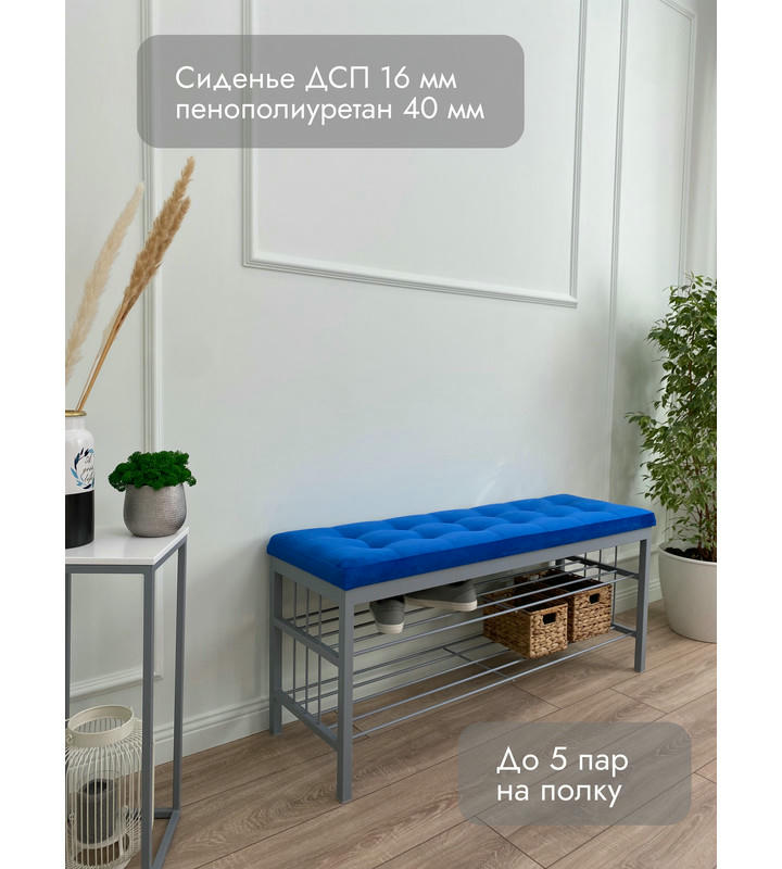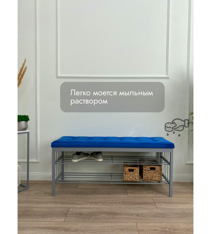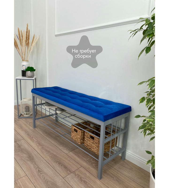 Банкетка Сканди-120-2-полочная (синий/серый)